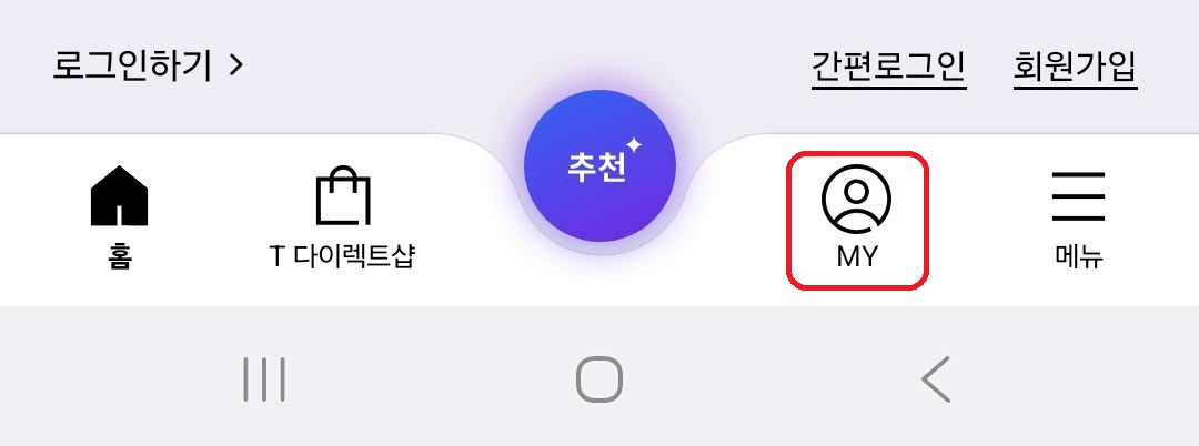 화면 맨 아래쪽에 사람 모양의 'MY' 아이콘이 보이시나요? 집 모양(홈) 오른쪽에 있습니다. 이 버튼을 톡 눌러주세요.